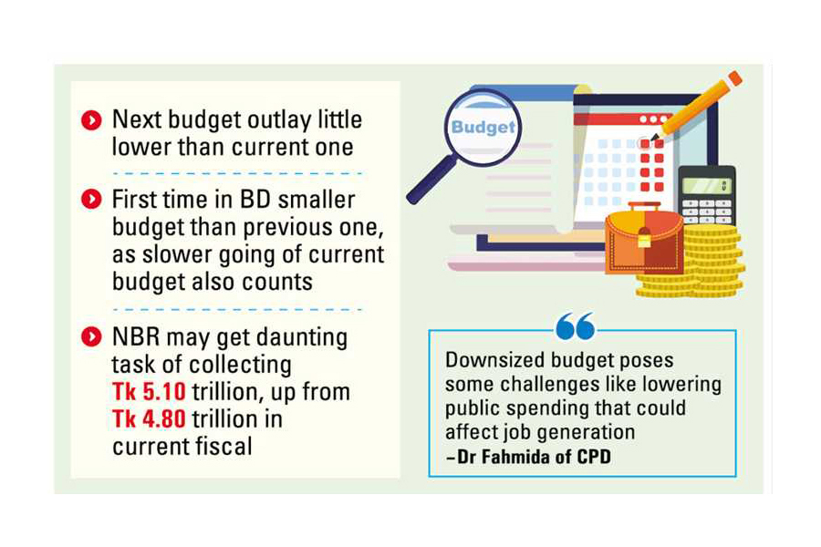 Officials give the possible budgeting outlook, saying that this is for the first time Bangladesh is framing a smaller budget compared to the previous one, as the government also takes into consideration slower implementation of the current budget.
