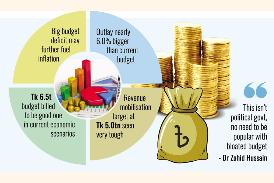 Mr Hussain suggests the government not prepare a budget bigger than Tk 6.5 trillion. "This is not a political government and no need to be popular by expanding budgetary spending."
