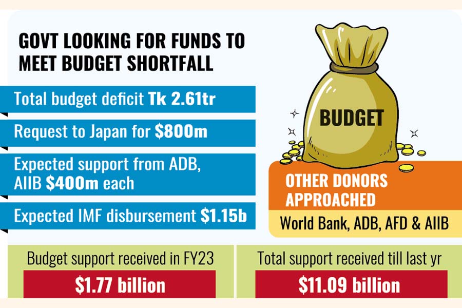 A sum of US$800 million is now sought by the government from Japan as budget-support credit to finance shortfall in the current fiscal, officials say, in a last-minute quest.