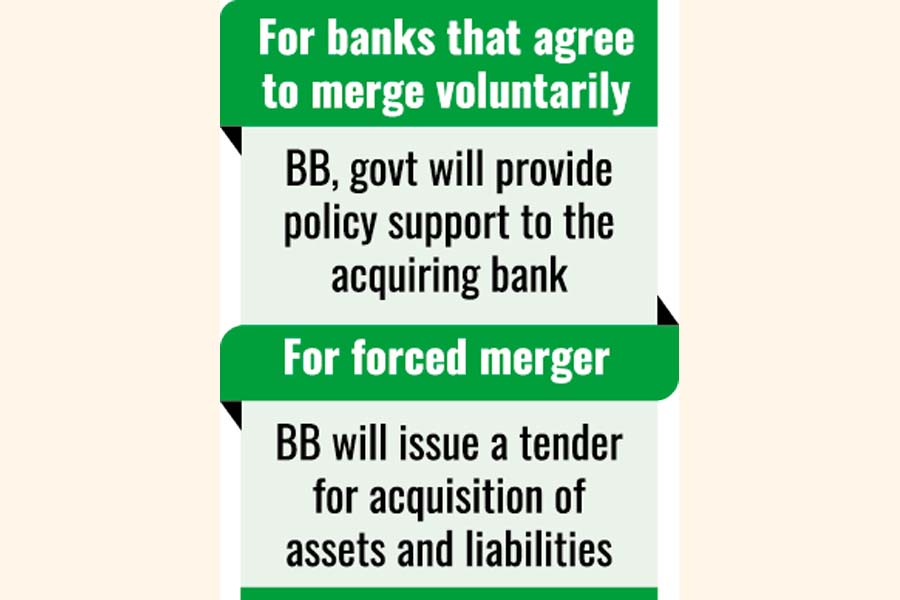 The Bangladesh Bank (BB) has issued its first-ever bank merger policy, outlining both voluntary or agreed mergers and forced mergers.