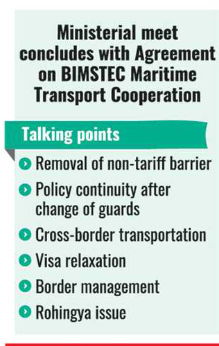 The Foreign Ministers signed the Agreement on BIMSTEC Maritime Transport Cooperation marking a significant step towards enhancing regional connectivity.
