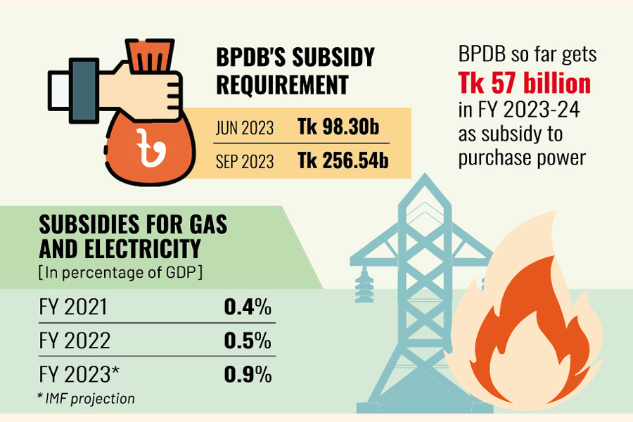 Outstanding subsidy requirement of the BPDB as of June 2023 stands around Tk 98.30 billion, which had soared to around Tk 256.54 billion until September in the past year, the official added.