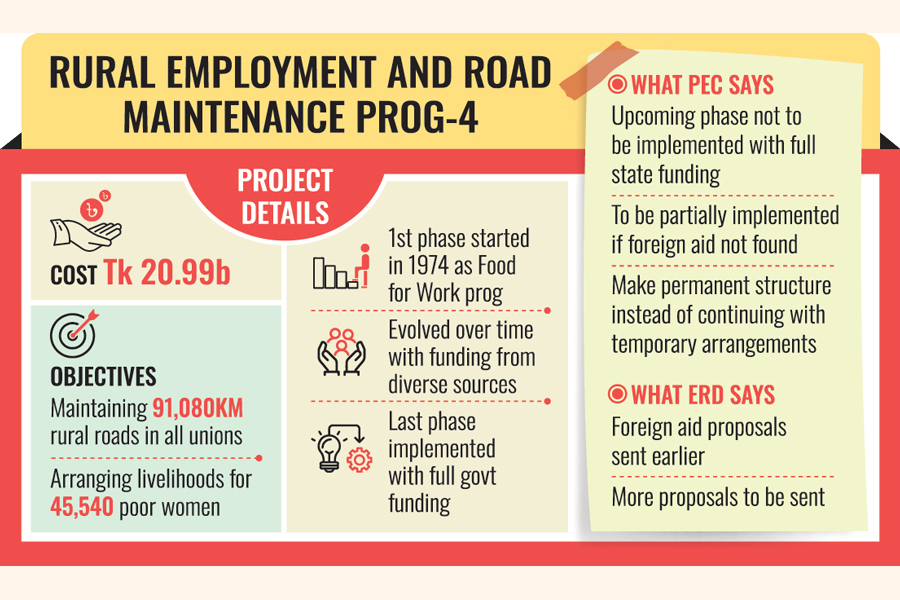 The LGD earlier sent the proposal for the project involving the maintenance of 91,080 kilometres of rural roads across the country. The project, to be implemented by the LGED, also aims at providing livelihoods for 45,540 underprivileged women.