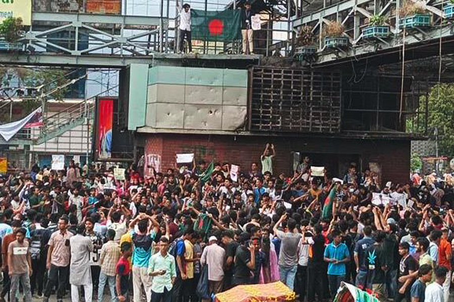 In Khilgaon, the students took position on the road below the flyover in the Khilgaon Railgate area protesting the recent killings and demanding justice around 11:45 am.