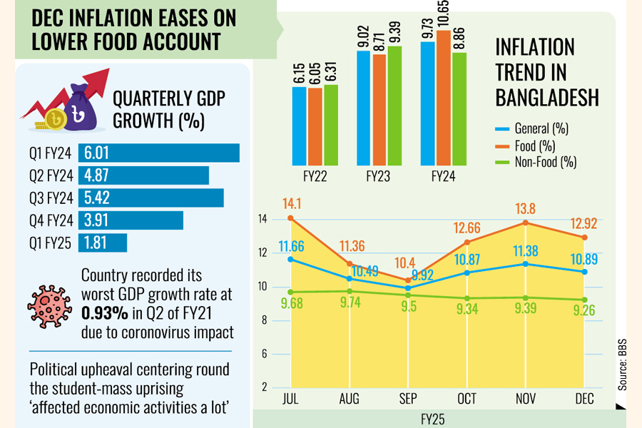 The country's economic output fell to only 1.81 per cent as of the Q1 FY2025 as political upheaval centering round the student-mass uprising during the period "affected economic activities a lot", as manifest in the Bangladesh Bureau of Statistics (BBS) data released Monday.