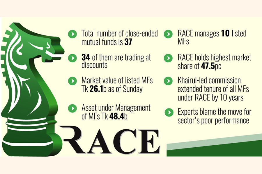 RACE manages 10 close-ended mutual funds and holds the highest market share of 47.5 per cent with assets worth Tk 23 billion as of Sunday.