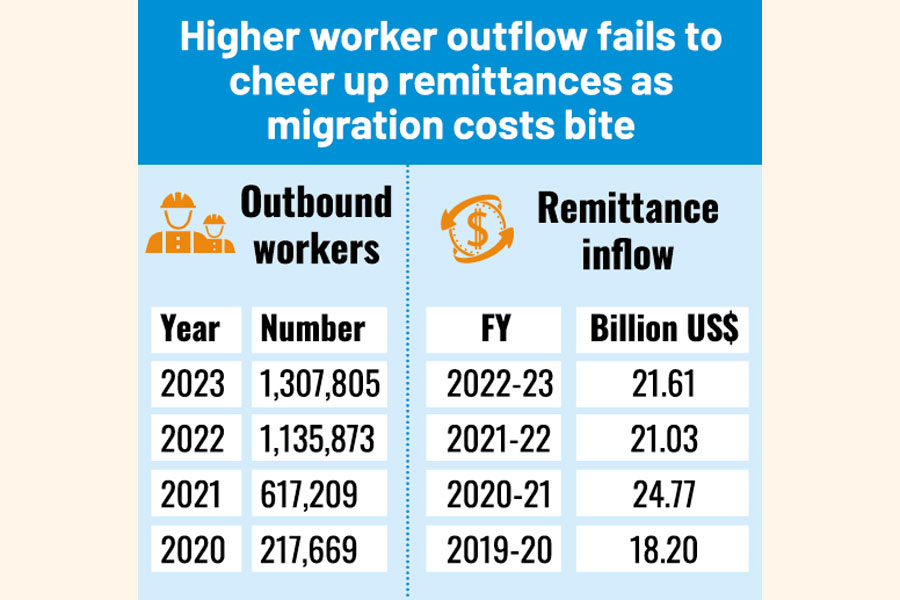 Besides, they said the country lags behind in sending skilled workers, contributing to the lower remittance income compared to some neighbouring countries with smaller outbound worker numbers.