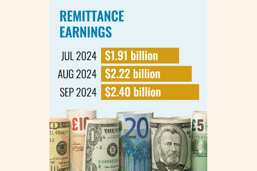 Compared with the remittance earnings in August 2024 worth $2.22 billion, the September figure is around $200-million higher.
