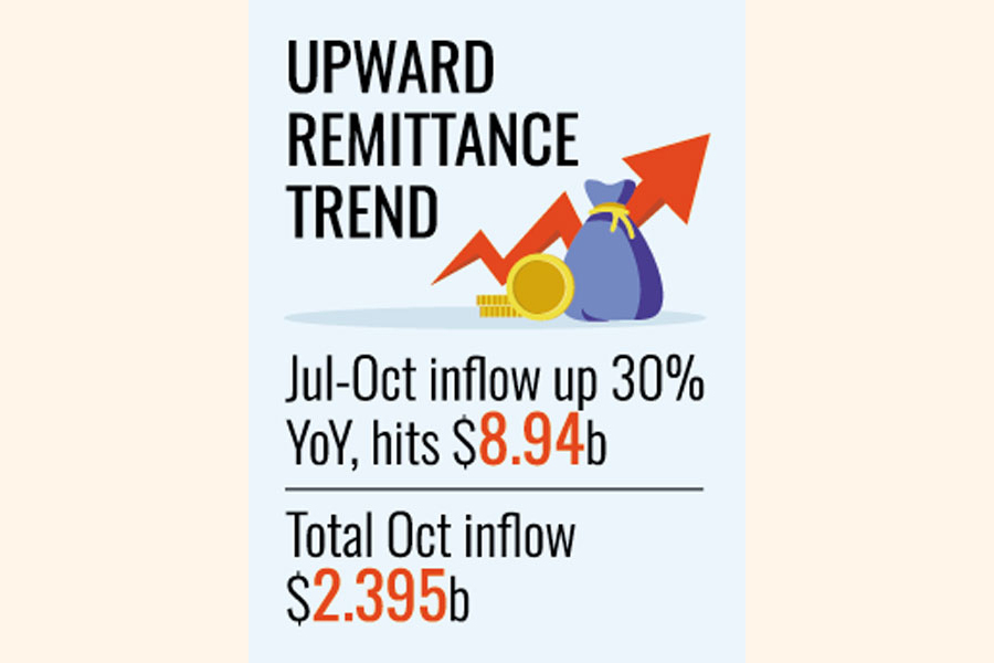 In October, remittance inflows had totalled $2.395 billion, also marking a robust performance, the central bank said.