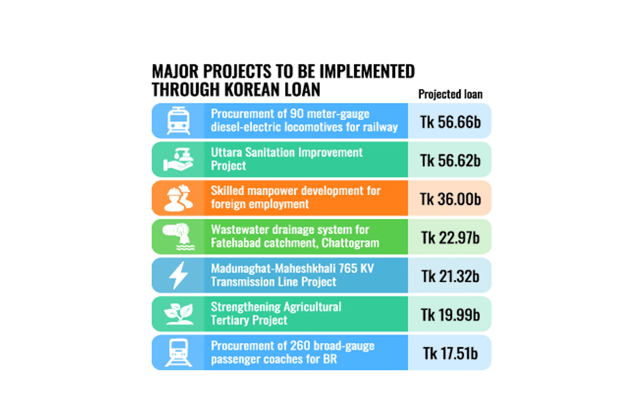 Dhaka expects South Korean loans for nearly two dozen proposed development projects initially involving Tk 816.70 billion as the Asian country aspires to be a new financier of megaprojects in Bangladesh.