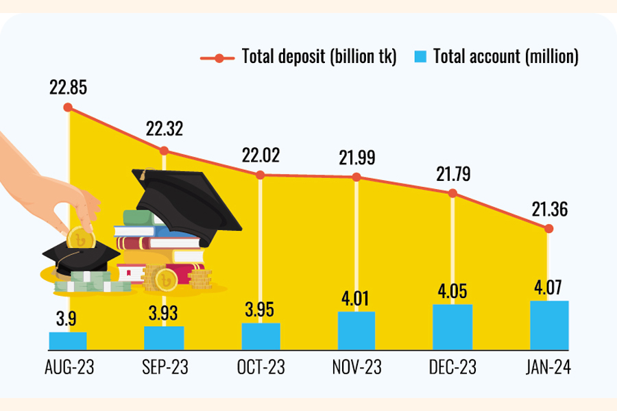 According to Bangladesh Bank data, Tk 21.79 billion was saved in school accounts in December 2023 compared to Tk 21.36 billion in January this year. This marks a decrease of nearly 2 per cent.