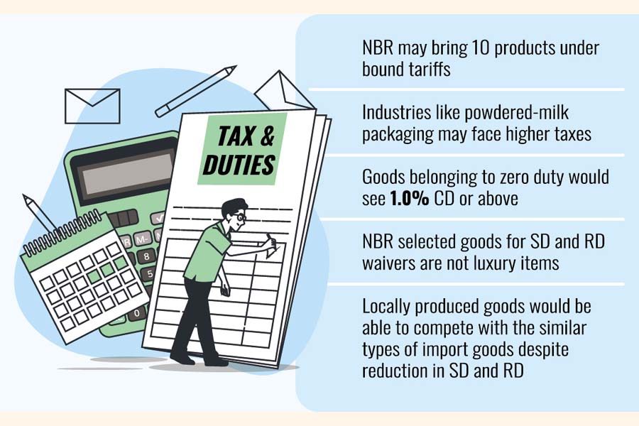 As per World Trade Organization (WTO) rules, the National Board of Revenue (NBR) may bring 10 products under bound tariffs.
