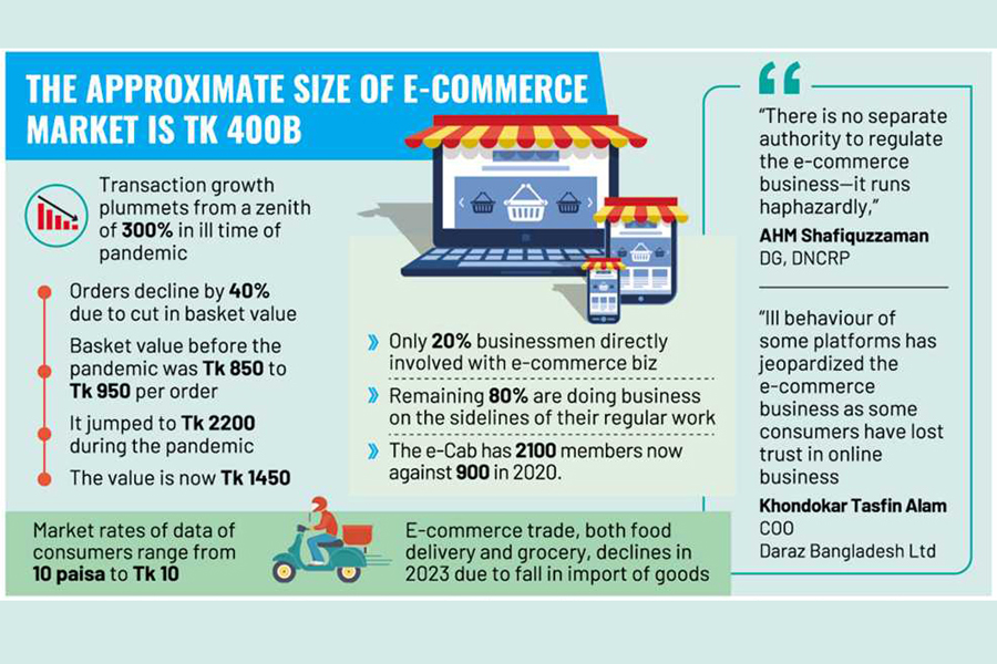 Fabulously growing e-commerce business in Bangladesh, which boasted a record growth of 300 per cent during the Covid-19 pandemic, now loses its shine for multiple factors that conspicuously include confidence trick on consumers.