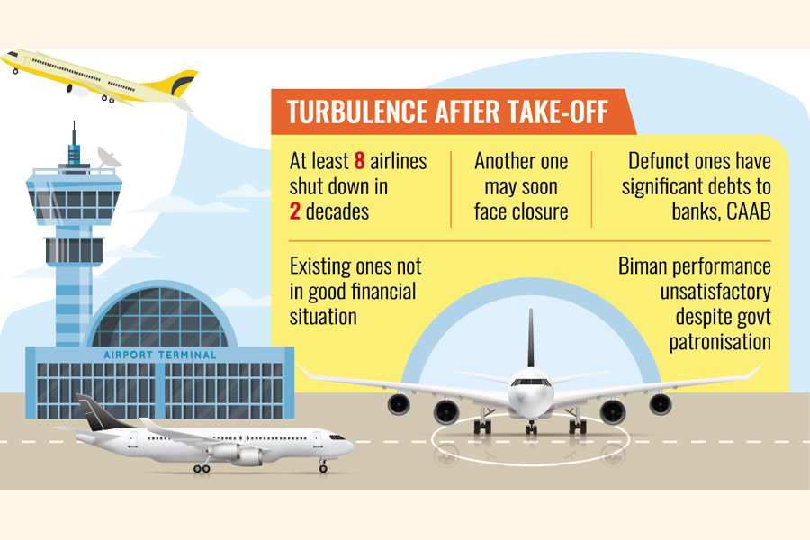 Notwithstanding some infrastructural development in Bangladesh's aviation sector over the decades, local airlines have been struggling to achieve sustainability for reasons that include policy flaws and cost escalation.