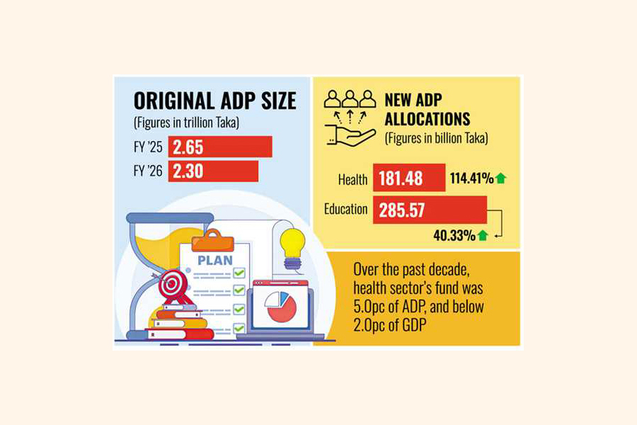 Meanwhile, the education sector is going to receive Tk 285.57 billion, 12.41 per cent of the ADP for the upcoming FY2026.