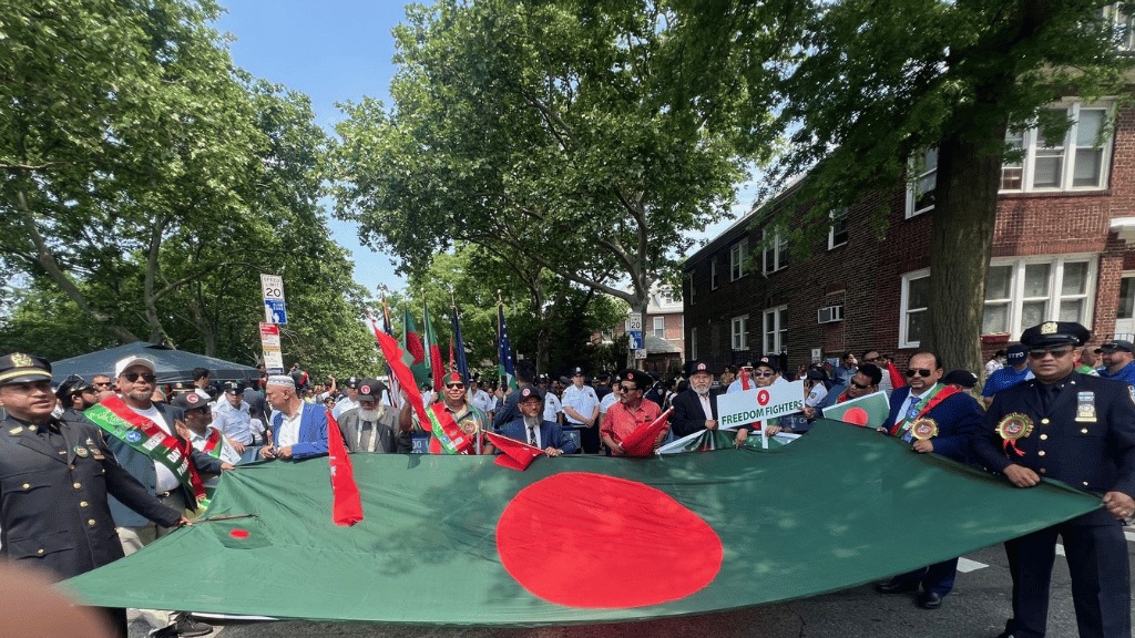 Bangladeshi expatriates holding flags at the Bangladesh Day Parade in New York, USA — File Photo