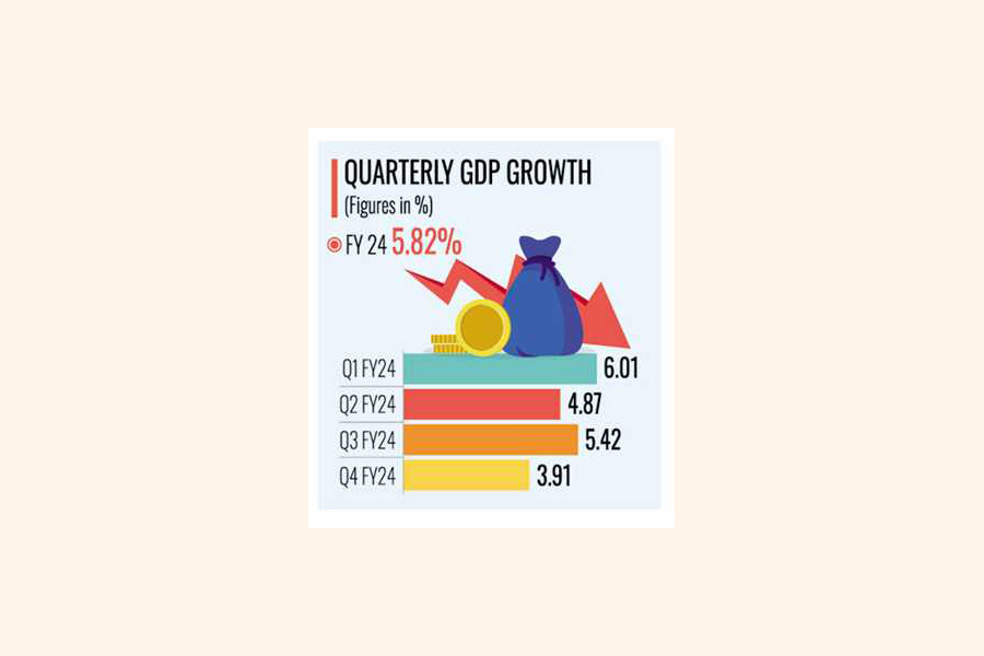 The growth rate had passed a bumpy road over the four quarters during last fiscal which also reflected in the annual average economic growth rate of the FY2024, Bangladesh Bureau of Statistics (BBS) data showed.