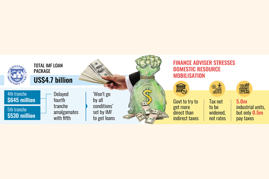 Two tranches of funds from the IMF lending package to Bangladesh are now expected together in June, after further delays in release of one amid dilemmas, the finance adviser indicates.