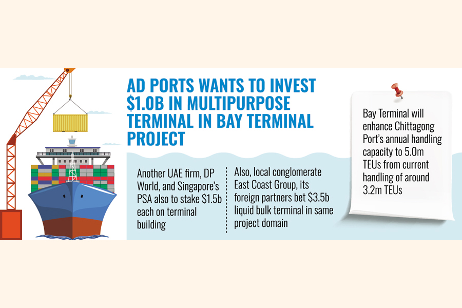 Under the MoU, AD Ports Group had planned to invest $1.0 billion in construction of a multipurpose terminal under the Bay Terminal project near the Chittagong seaport, dubbed Bangladesh's commercial lifeline.