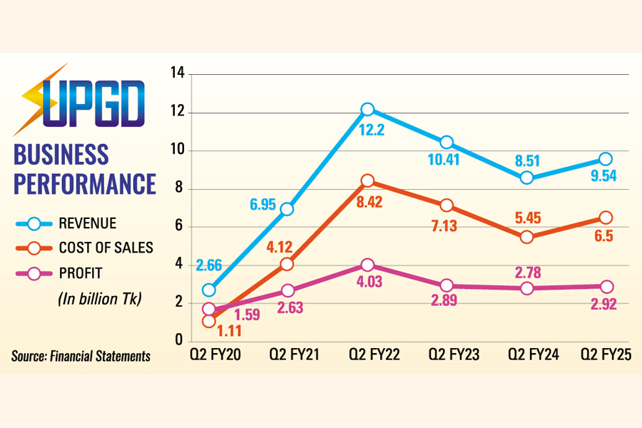 United Power Generation & Distribution Company secured a 5 per cent year-on-year growth in profit to Tk 2.92 billion in the second quarter of FY25, driven by higher revenue amid bulk power tariff hike.
