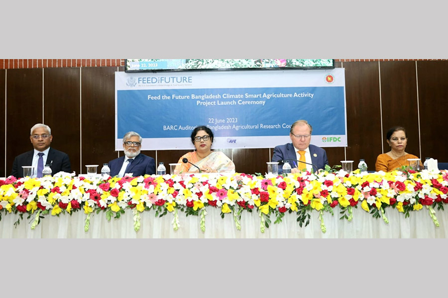 Representatives from the US Embassy, the Ministry of Agriculture, and the International Fertilizer Development Center (IFDC) launched a five-year, $35 million project on Thursday to help Bangladeshi farmers mitigate climate impacts and increase their production.