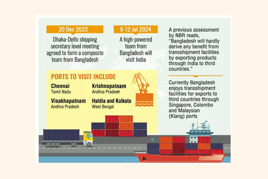 However, a previous assessment by the National Board of Revenue (NBR) reads: "Bangladesh will hardly derive any benefit from transshipment facilities by exporting its products through India to third countries."