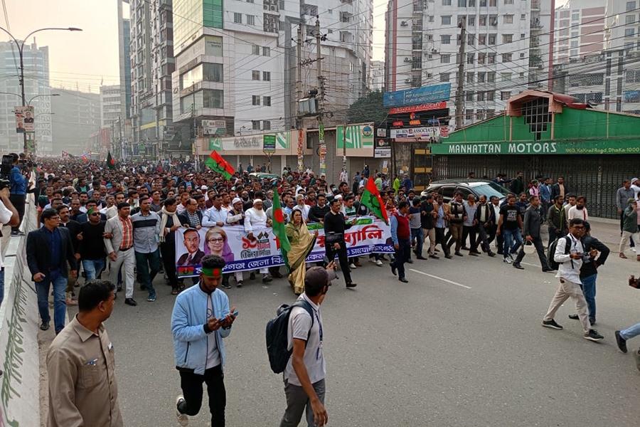 From the rally, the party's first since violence between their activists and the police and AL activists on the opposite side foiled the party’s grand rally on October 28, the opposition leaders and supporters chanted various slogans against the planned January 7 election, calling it 'one-sided' and demanding cancellation of the polling schedule to hold a fair and inclusive election under a neutral government.