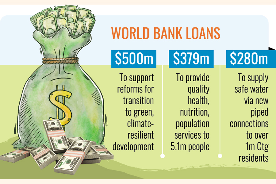 The two other loans were approved to improve health services ($379 million) and Chattogram Water Supply and Sewerage Authority (WASA) services ($280 million), the World Bank said in a press release on the day.
