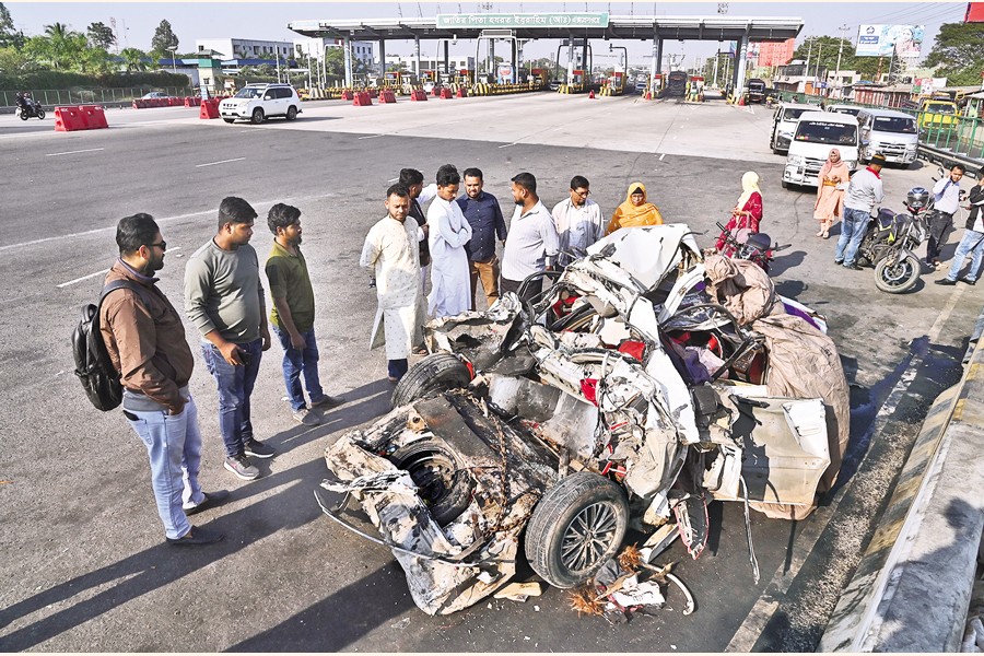 Can this be an accident? Or, a deliberately invited consequence of extreme callousness and unconcern about human life and safety? If the death of six people on Dhaka-Mawa Expressway on Friday had been a tragic outcome of some causal factors, it could be somehow accepted by acknowledging that such incidents, while unfortunate, are sometimes unavoidable. But in this case, a speeding passenger bus, instead of slowing down and stopping at the toll plaza of an expressway, rammed into vehicles standing at the toll booth and crushed the passengers on board. The bus initially rammed a car from behind, and the car then slammed into a motorcycle in front of it, leaving a child on the motorcycle killed on the spot. Of the eight others injured at the scene, four died on the way to a hospital and one died there later on. The CCTV footage of the tragedy, which snapped six lives in the blink of an eye, including four members of a family, making rounds on social media, has left the public in a state of shock and disbelief.