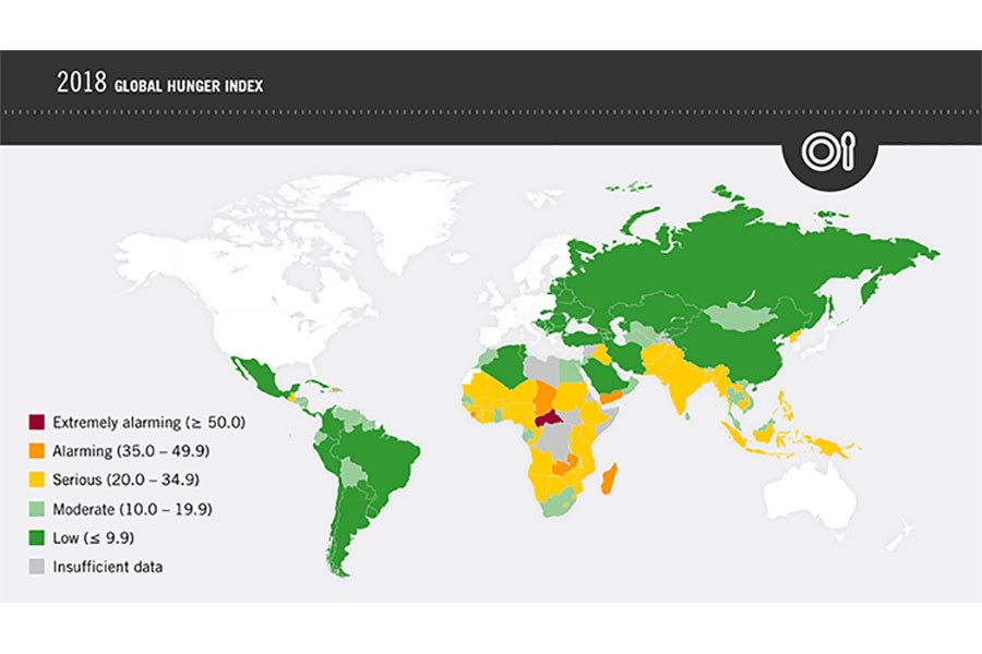The Global Hunger Index (GHI) published last week has few indicators of the South Asian regions to eulogise. According to the report prepared by the Welthungerhilfe and the Concern Worldwide, on certain counts the performance by the region has been poorer compared to the year 2000. Of the prevalence of four indicators -- undernourishment, child wasting, child stunting and child mortality -- on which the GHI is based, child wasting has slightly increased since 2000. No wonder, the UNICEF, the WHO and the World Bank have been unanimous to determine that this is a critical public health emergency for South Asia. Read against the global improvement on all counts, the South Asian performance bracketed with south Saharan Africa is really alarming. True, the rates of undernourishment, child wasting, stunting and mortality of the enormous Indian population has greatly influenced the South Asian performance. Ranked at 103, India together with Pakistan ranked at 106 has done the damage. However, Bangladesh too has not been in an enviable position.