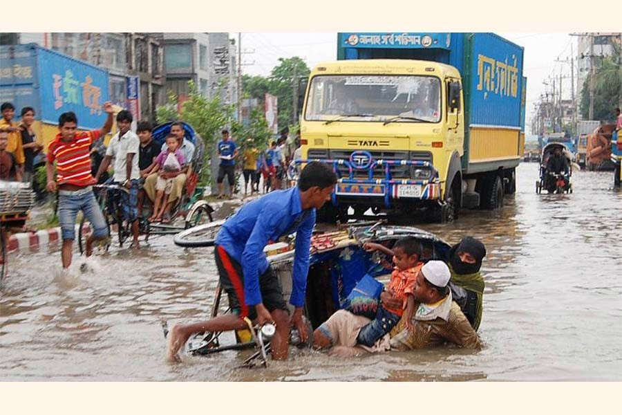 Already infamous for its tailback, the capital city forces its inhabitants to incur a daily loss of 3.2 million working hours on an average. In an analysis of the Dhaka traffic, the World Bank found that the average traffic speed in Dhaka dropped to just seven kilometre from 21 kilometre a decade ago. A similar comparative study of nightmarish water-logging now and a decade ago would have revealed unabated deterioration in the situation. The reasons why rainwater cannot be drained away are many but some notable ones cannot escape the policymakers' attention. Here is a city where the water bodies -both within and around -have been mostly left unattended. Also the space left uncovered by concrete or asphalt is just a fraction of the covered area, resulting in no seepage of water underground. Of the 43, canals only 25 are functional and that too in a restricted manner. Then, floodplains around the city have been indiscriminately land-filled for housing. Finally, the rivers girdling the city have also been encroached upon with the result that the shallow riverbeds lose flow and flood their banks in the monsoon.