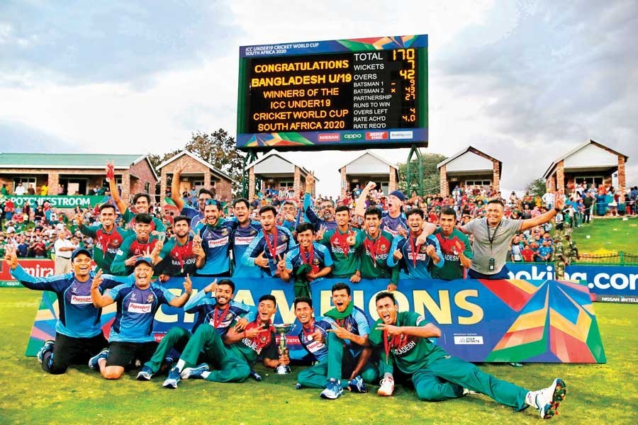 Where the celebrated senior cricketers fell short, the under-19 unsung boys made the dream come true. They are the world champions in the 50-over version of cricket. Their achievement is the first of its kind in the country's history. Earlier the triumph in the 1997 ICC tournament in Malaysia for 1999 World Cup qualification was a milestone for Bangladesh cricket because that announced the country's presence on the world stage. This time the win for the younger cricketers is a testament of their prowess as the world's best among the cricket-playing nations. It is the game's ultimate success and to their credit, the boys have made it happen. The way the younger cricketers have applied themselves is what really sets them apart from the Bangladesh teams competing earlier at this or senior levels. For the Bangladesh cricket teams, it was so near and yet so far in a number of major tournaments' finals. The maturity of mindset and the application of cricketing skills displayed by the under-19 cricketers have rightly drawn appreciation from the best in the business.