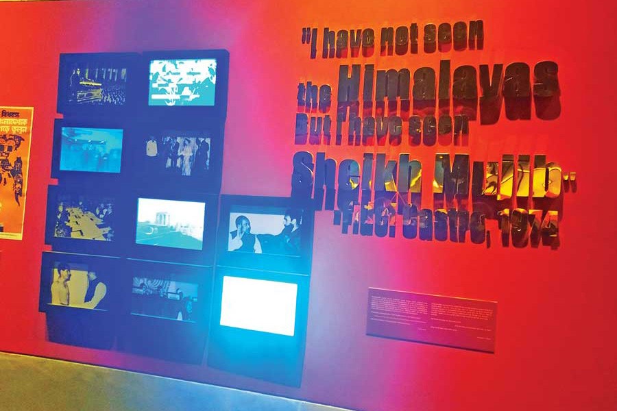 A gallery, fully covered with all black backgrounds, covered the period between 1920 and 1975. Archival photographs, pencil sketches, historical videos--all depicting the journey of Bangabandhu Sheikh Mujibur Rahman. Here, one could feel the existence of this glorious character as from his birth till his run along, infinitesimal trifles have been laid bare.