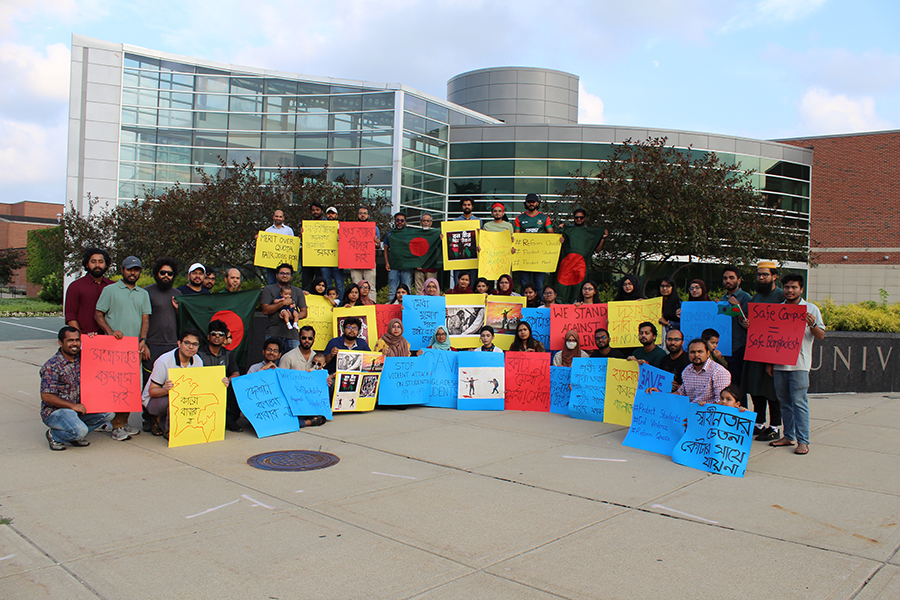 Bangladeshi students studying at different universities in the United States have organised a human chain to protest the attacks on the students advocating for quota reform across Bangladesh. The demonstration took place at 7:00 pm local time on Tuesday (July 16), in front of Michigan State University's Skandalaris Football Center.