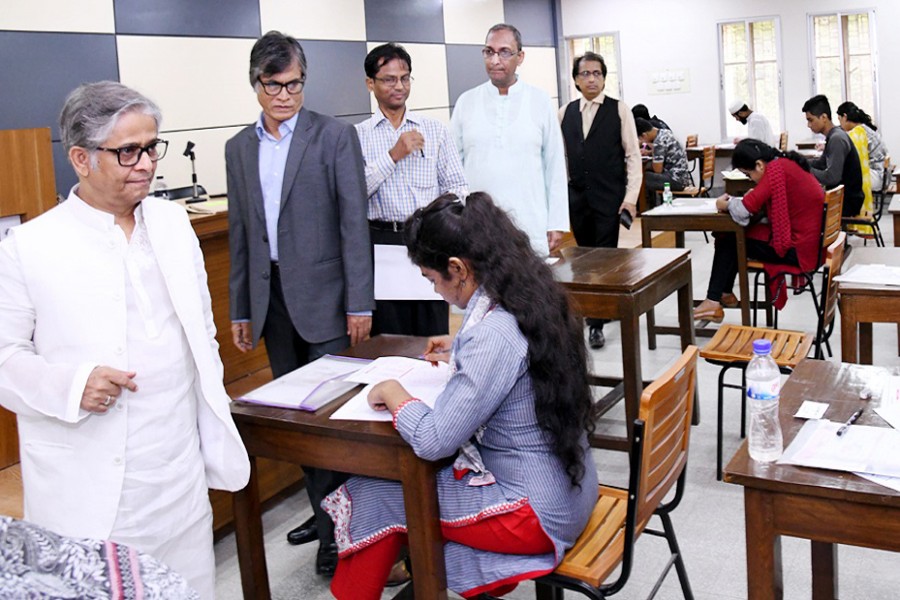 DU Vice-Chancellor Professor Dr MdAkhtaruzzaman, Pro-VC (administration) Prof Dr Muhammad Samad, Treasurer Prof Dr Md Kamal Uddin and Proctor Prof Dr AKM Golam Rabbani visited different examination centers.