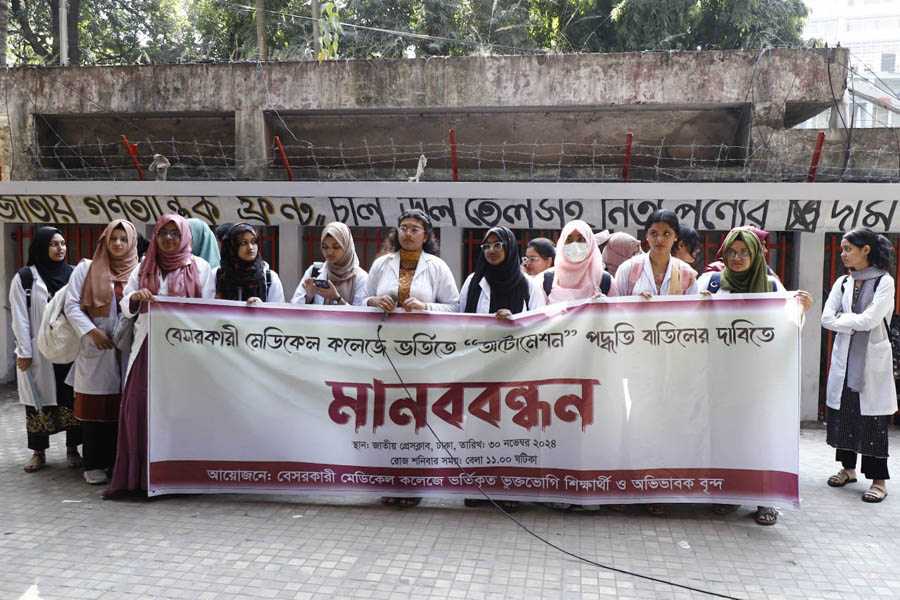 The victim students admitted to private medical colleges and their parents organised a human chain in front of the National Press Club demanding the cancellation of the automation system on Saturday.