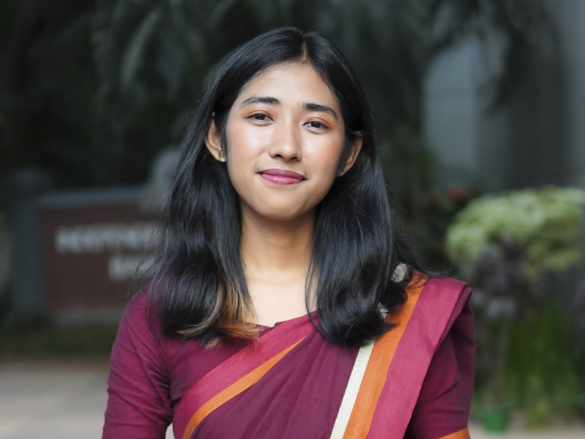 Ive, from Madhupur, Tangail, and the younger of two sisters, completed her secondary education at Madhupur Rani Bhabani Government High School and her higher secondary studies at YWCA Higher Secondary School, Dhaka. She is studying at IUB on a 100% scholarship as a student from an ethnic community.