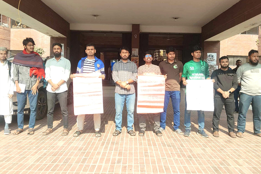 Under the banner of "Gono Obhyutthan Rakkha Andolon," the protest took place at 11:30 am in front of the university's new administrative building.