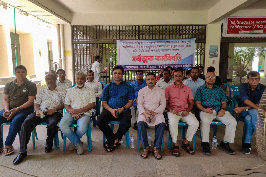 JUTA President Professor Motaher Hossain told the FE: "Since July 1, we have been on a complete strike, advocating for reasonable demands. We are trying to engage with the government. Our movement and dialogue will continue concurrently. If a negotiated solution is reached, we will end the strike. However, until our demands are met, we will not participate in classes, tests or academic work."