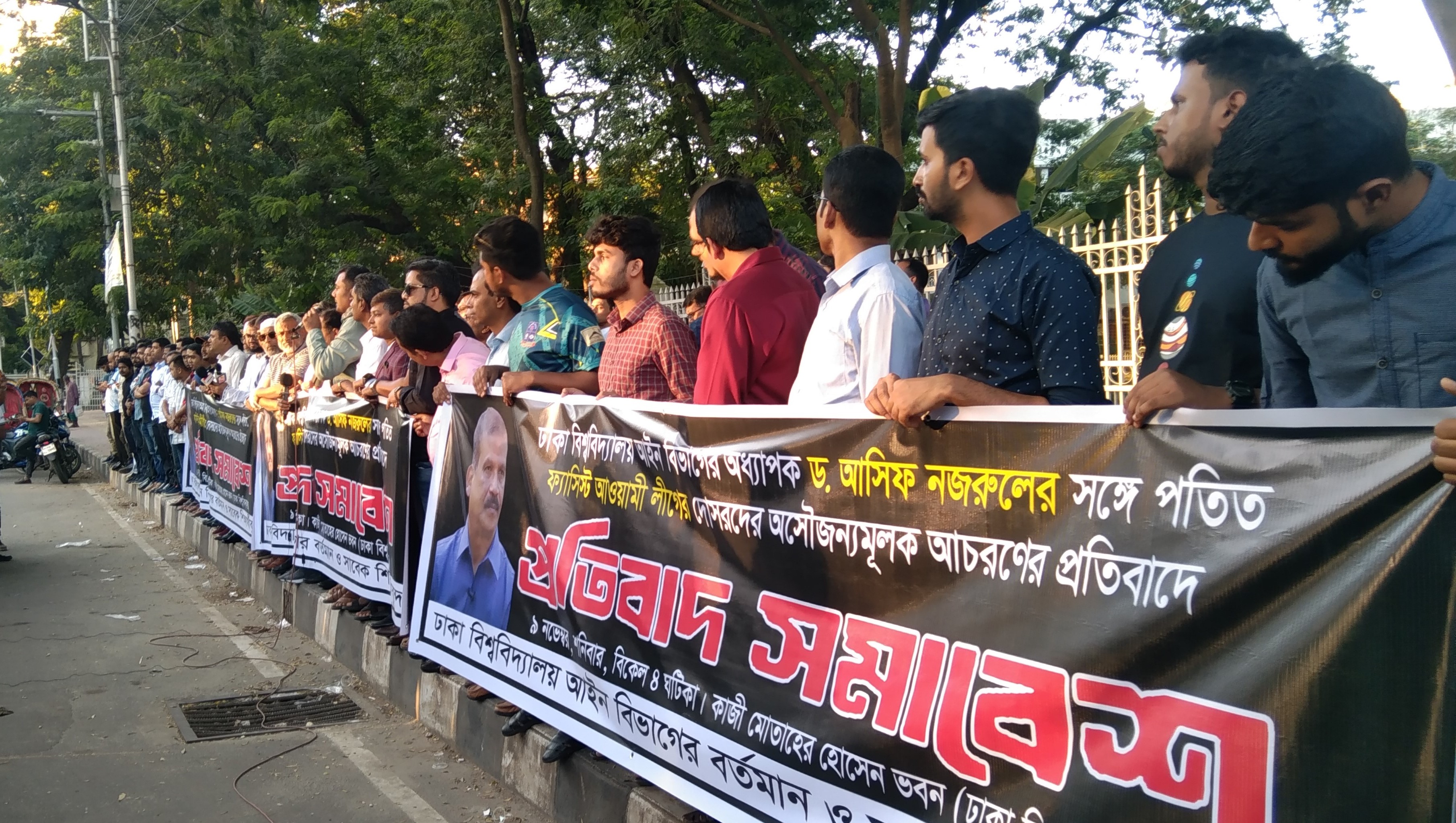 Current and former students of Dhaka University’s Law Department held a demonstration against the harassment of Law Adviser Dr Asif Nazrul by Awami League leaders and activists at Geneva Airport in Switzerland.