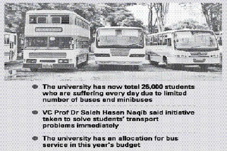 When asked about the overall issue, the university's Vice Chancellor Professor Dr. Saleh Hasan Naqib said, "We have taken initiative in this matter. We understand that students are suffering a lot. We have an allocation for bus service in this year's budget. The Transport Department has already started working on it. Hopefully, we will be able to resolve this issue within this year."