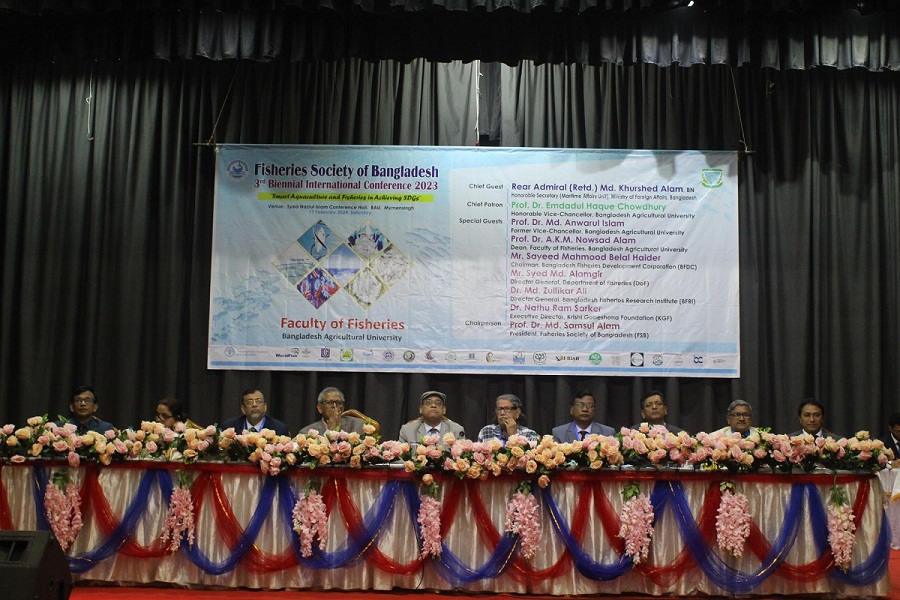 On Saturday (February 17), at 10 am in Syed Nazrul Islam Conference Hall of the University, the Faculty of Fisheries Science and Fisheries Society of Bangladesh (FSB) organised a two-day international conference titled 'Smart Aquaculture and Fishing in Achieving SDGs'. During the event, the main article was presented by Prof. Dr. Harunur Rashid of the Fisheries Management Department.