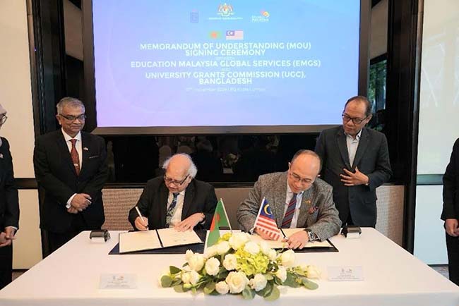 The University Grants Commission (UGC) and Education Malaysia Global Services (EMGS) have signed an MoU to implement joint collaborative activities to improve the quality of higher education and research in Bangladesh.