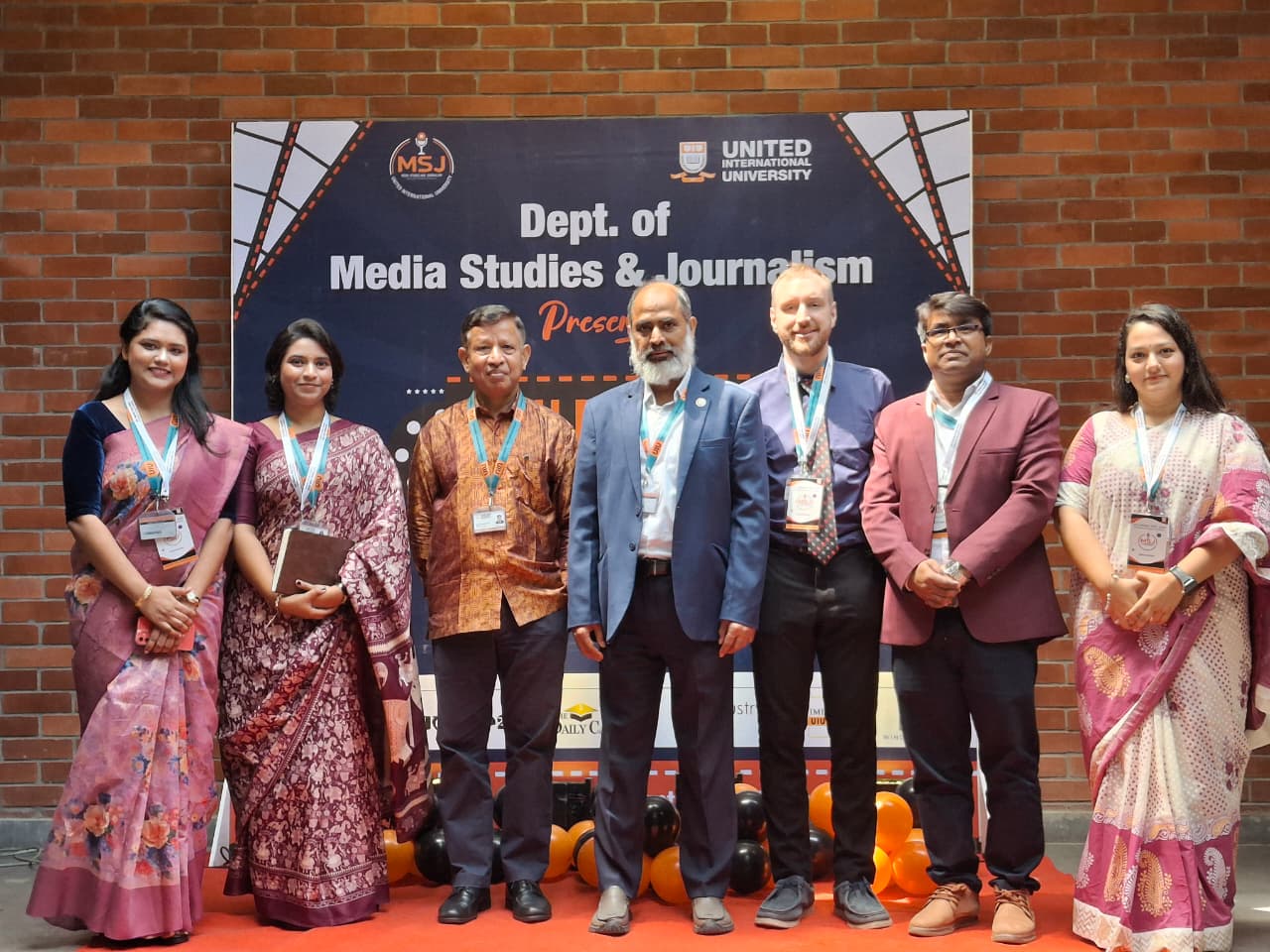 Dr Md. Zulfiqur Rahman candidly shared his struggles with shrinking attention spans, recalling how devices replaced his once voracious reading habits. He urged students to return to books and strengthen their critical thinking skills. The opening session concluded with a documentary on the Department of Media Studies and Journalism, followed by a musical performance capturing student life on campus.