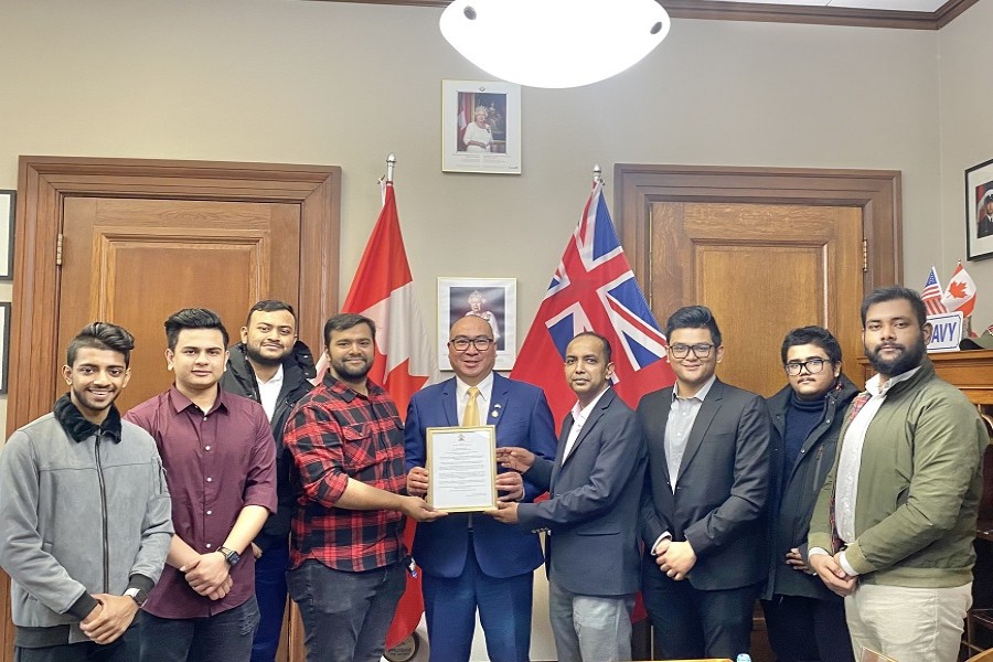 President Kazi Ishayat Kayesh, Vice President Internal Aannaffee Yash and Vice President External Abraar Fahim visited Provincial Legislative Assembly of Manitoba along with representatives of the Bangladeshi community on March 22.