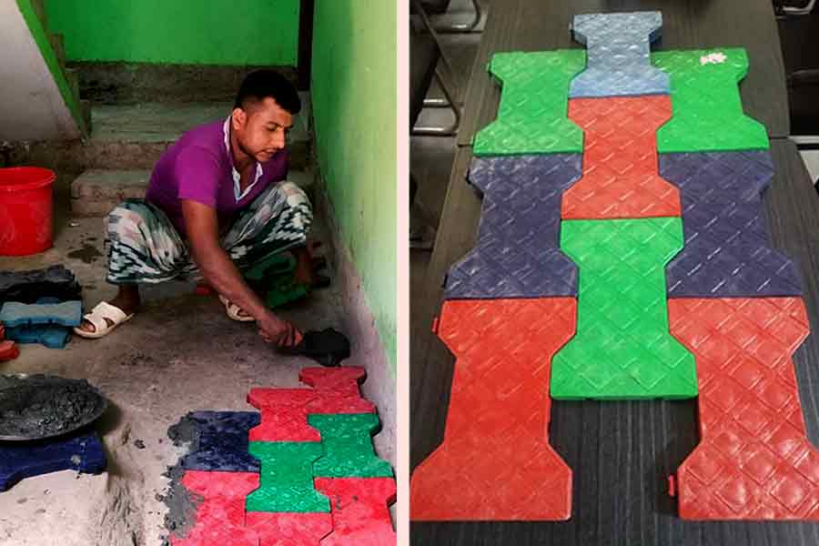 A small entrepreneur of Bangladesh has produced cost-effective pavement tiles by recycling plastic waste, one of the factors of environmental degradation.