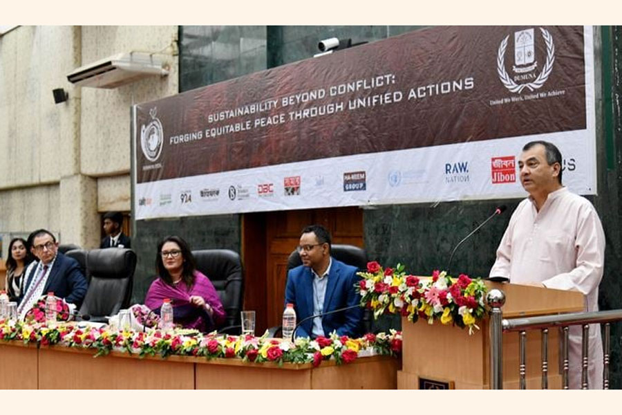 “Youth must engage themselves in solving the UN identified three critical problems in the world: climate change, biodiversity loss, and pollution,” he said while addressing the closing ceremony of the Dhaka University National Model United Nations (DUNMUN) 2024, themed “Sustainability beyond Conflict: Forging Equitable Peace through Unified Actions,” held at Nabab Nawab Ali Chowdhury Senate Bhaban at the University of Dhaka.