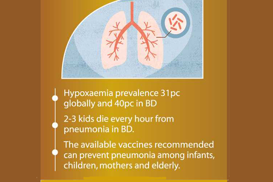 The scenario is direr in Bangladesh as two to three children die every hour from pneumonia, with an annual toll of 24,000 deaths, which is 24 per cent of all deaths in under-five children.