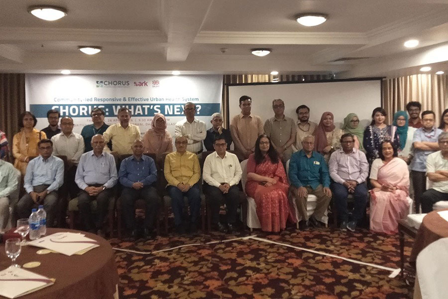 The final dissemination event of the Community-led Responsive and Effective Urban Health System (CHORUS) programme was held at a hotel in Dhaka, bringing together policymakers, health experts, development partners, researchers, and media representatives.