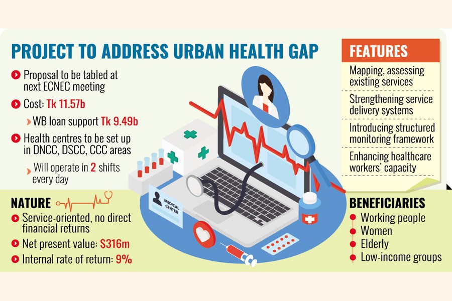 Under the project, 170 city health centres will be established in the areas of Dhaka north, Dhaka south, and Chattogram city corporations.